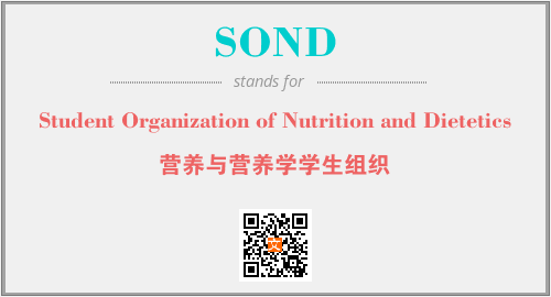 上述内容是“Student Organization of Nutrition and Dietetics”作为“SOND”的缩写,解释为“营养与营养学学生组织”时的信息,以及英文缩略词SOND所代表的英文单词,其对应的中文拼音、详细解释以及在英文中的流行度和相关分类、应用领域及应用示例等。