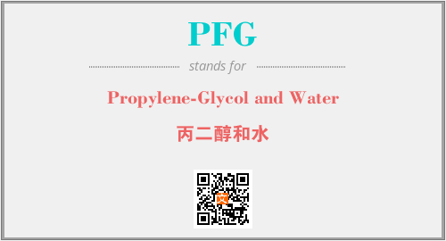 上述内容是“Propylene-Glycol and Water”作为“PFG”的缩写,解释为“丙二醇和水”时的信息,以及英文缩略词PFG所代表的英文单词,其对应的中文拼音、详细解释以及在英文中的流行度和相关分类、应用领域及应用示例等。