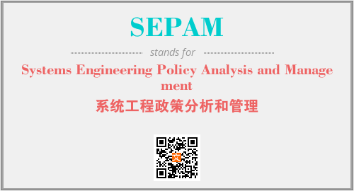 上述内容是“Systems Engineering Policy Analysis and Management”作为“SEPAM”的缩写,解释为“系统工程政策分析和管理”时的信息,以及英文缩略词SEPAM所代表的英文单词,其对应的中文拼音、详细解释以及在英文中的流行度和相关分类、应用领域及应用示例等。