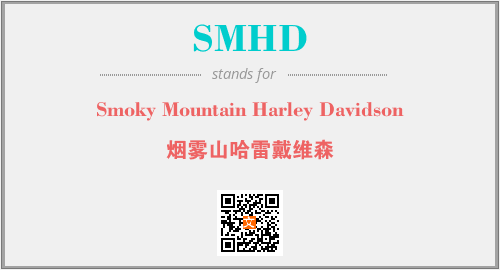英文缩略词“SMHD”经常作为“Smoky Mountain Harley Davidson”的英文缩写来使用,中文表示:“烟雾山哈雷戴维森”。本文将详细介绍英文缩写词SMHD所代表英文单词,其对应的中文拼音、详细解释以及在英语中的流行度。此外,还有关于缩略词SMHD的分类、应用领域及相关应用示例等。