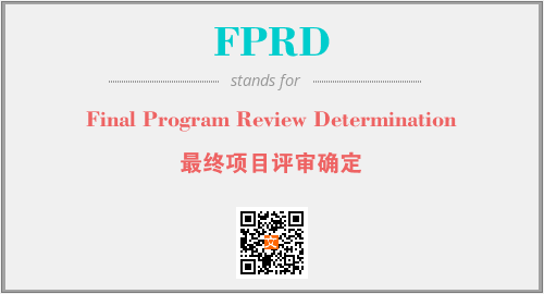 上述内容是“Final Program Review Determination”作为“FPRD”的缩写,解释为“最终项目评审确定”时的信息,以及英文缩略词FPRD所代表的英文单词,其对应的中文拼音、详细解释以及在英文中的流行度和相关分类、应用领域及应用示例等。