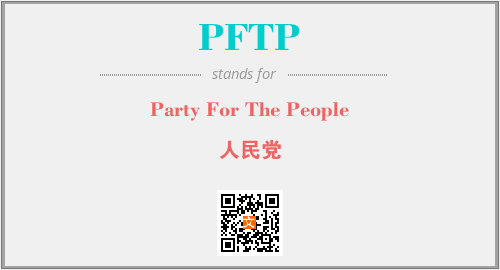 上述内容是“Party For The People”作为“PFTP”的缩写,解释为“人民党”时的信息,以及英文缩略词PFTP所代表的英文单词,其对应的中文拼音、详细解释以及在英文中的流行度和相关分类、应用领域及应用示例等。