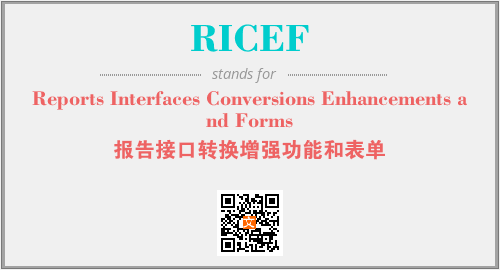 上述内容是“Reports Interfaces Conversions Enhancements and Forms”作为“RICEF”的缩写,解释为“报告接口转换增强功能和表单”时的信息,以及英文缩略词RICEF所代表的英文单词,其对应的中文拼音、详细解释以及在英文中的流行度和相关分类、应用领域及应用示例等。