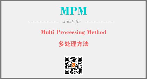 上述内容是“Multi Processing Method”作为“MPM”的缩写,解释为“多处理方法”时的信息,以及英文缩略词MPM所代表的英文单词,其对应的中文拼音、详细解释以及在英文中的流行度和相关分类、应用领域及应用示例等。