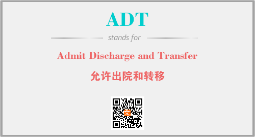 英文缩略词“ADT”经常作为“Admit Discharge and Transfer”的英文缩写来使用,中文表示:“允许出院和转移”。本文将详细介绍英文缩写词ADT所代表英文单词,其对应的中文拼音、详细解释以及在英语中的流行度。此外,还有关于缩略词ADT的分类、应用领域及相关应用示例等。