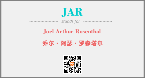 上述内容是“Joel Arthur Rosenthal”作为“JAR”的缩写,解释为“乔尔·阿瑟·罗森塔尔”时的信息,以及英文缩略词JAR所代表的英文单词,其对应的中文拼音、详细解释以及在英文中的流行度和相关分类、应用领域及应用示例等。