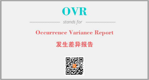 英文缩略词“OVR”经常作为“Occurrence Variance Report”的英文缩写来使用,中文表示:“发生差异报告”。本文将详细介绍英文缩写词OVR所代表英文单词,其对应的中文拼音、详细解释以及在英语中的流行度。此外,还有关于缩略词OVR的分类、应用领域及相关应用示例等。