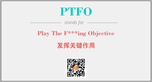 以上为Play The F***ing Objective英文缩略词PTFO的中文解释,以及该英文缩写在英语的流行度、分类和应用领域方面的信息。