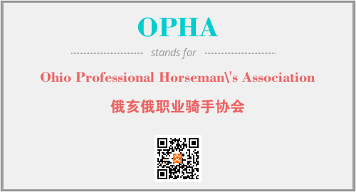 上述内容是“Ohio Professional Horseman\'s Association”作为“OPHA”的缩写,解释为“俄亥俄职业骑手协会”时的信息,以及英文缩略词OPHA所代表的英文单词,其对应的中文拼音、详细解释以及在英文中的流行度和相关分类、应用领域及应用示例等。