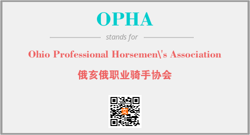 上述内容是“Ohio Professional Horsemen\'s Association”作为“OPHA”的缩写,解释为“俄亥俄职业骑手协会”时的信息,以及英文缩略词OPHA所代表的英文单词,其对应的中文拼音、详细解释以及在英文中的流行度和相关分类、应用领域及应用示例等。