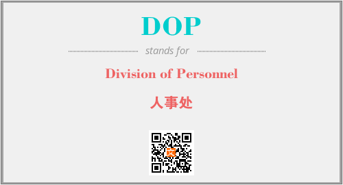 上述内容是“Division of Personnel”作为“DOP”的缩写,解释为“人事处”时的信息,以及英文缩略词DOP所代表的英文单词,其对应的中文拼音、详细解释以及在英文中的流行度和相关分类、应用领域及应用示例等。