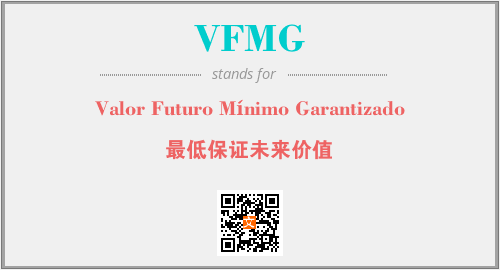 上述内容是“Valor Futuro Mínimo Garantizado”作为“VFMG”的缩写,解释为“最低保证未来价值”时的信息,以及英文缩略词VFMG所代表的英文单词,其对应的中文拼音、详细解释以及在英文中的流行度和相关分类、应用领域及应用示例等。