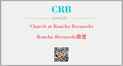 英文缩略词“CRB”经常作为“Church at Rancho Bernardo”的英文缩写来使用,中文表示:“Rancho Bernardo教堂”。本文将详细介绍英文缩写词CRB所代表英文单词,其对应的中文拼音、详细解释以及在英语中的流行度。此外,还有关于缩略词CRB的分类、应用领域及相关应用示例等。