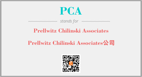 上述内容是“Prellwitz Chilinski Associates”作为“PCA”的缩写,解释为“Prellwitz Chilinski Associates公司”时的信息,以及英文缩略词PCA所代表的英文单词,其对应的中文拼音、详细解释以及在英文中的流行度和相关分类、应用领域及应用示例等。