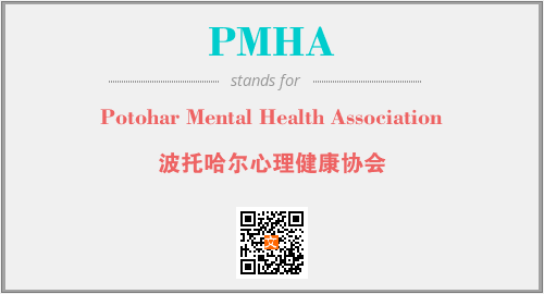 上述内容是“Potohar Mental Health Association”作为“PMHA”的缩写,解释为“波托哈尔心理健康协会”时的信息,以及英文缩略词PMHA所代表的英文单词,其对应的中文拼音、详细解释以及在英文中的流行度和相关分类、应用领域及应用示例等。