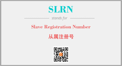 上述内容是“Slave Registration Number”作为“SLRN”的缩写,解释为“从属注册号”时的信息,以及英文缩略词SLRN所代表的英文单词,其对应的中文拼音、详细解释以及在英文中的流行度和相关分类、应用领域及应用示例等。