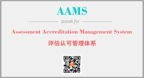 上述内容是“Assessment Accreditation Management System”作为“AAMS”的缩写,解释为“评估认可管理体系”时的信息,以及英文缩略词AAMS所代表的英文单词,其对应的中文拼音、详细解释以及在英文中的流行度和相关分类、应用领域及应用示例等。