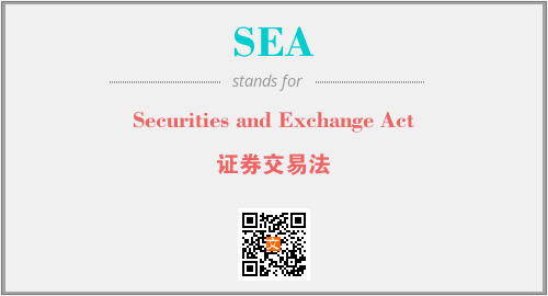 上述内容是“Securities and Exchange Act”作为“SEA”的缩写,解释为“证券交易法”时的信息,以及英文缩略词SEA所代表的英文单词,其对应的中文拼音、详细解释以及在英文中的流行度和相关分类、应用领域及应用示例等。