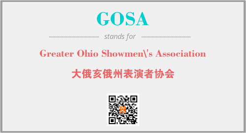 英文缩略词“GOSA”经常作为“Greater Ohio Showmen\'s Association”的英文缩写来使用,中文表示:“大俄亥俄州表演者协会”。本文将详细介绍英文缩写词GOSA所代表英文单词,其对应的中文拼音、详细解释以及在英语中的流行度。此外,还有关于缩略词GOSA的分类、应用领域及相关应用示例等。
