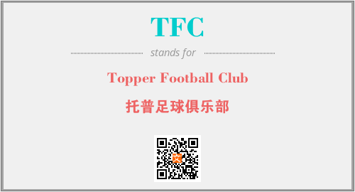 上述内容是“Topper Football Club”作为“TFC”的缩写,解释为“托普足球俱乐部”时的信息,以及英文缩略词TFC所代表的英文单词,其对应的中文拼音、详细解释以及在英文中的流行度和相关分类、应用领域及应用示例等。