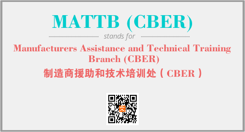 上述内容是“Manufacturers Assistance and Technical Training Branch (CBER)”作为“MATTB (CBER)”的缩写,解释为“制造商援助和技术培训处(CBER)”时的信息,以及英文缩略词MATTB (CBER)所代表的英文单词,其对应的中文拼音、详细解释以及在英文中的流行度和相关分类、应用领域及应用示例等。