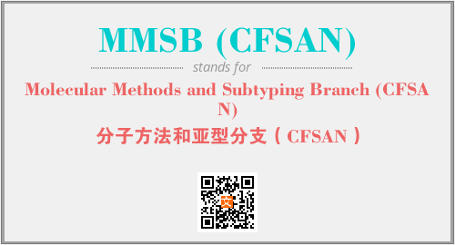 英文缩略词“MMSB (CFSAN)”经常作为“Molecular Methods and Subtyping Branch (CFSAN)”的英文缩写来使用,中文表示:“分子方法和亚型分支(CFSAN)”。本文将详细介绍英文缩写词MMSB (CFSAN)所代表英文单词,其对应的中文拼音、详细解释以及在英语中的流行度。此外,还有关于缩略词MMSB (CFSAN)的分类、应用领域及相关应用示例等。