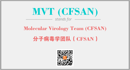 英文缩略词“MVT (CFSAN)”经常作为“Molecular Virology Team (CFSAN)”的英文缩写来使用,中文表示:“分子病毒学团队(CFSAN)”。本文将详细介绍英文缩写词MVT (CFSAN)所代表英文单词,其对应的中文拼音、详细解释以及在英语中的流行度。此外,还有关于缩略词MVT (CFSAN)的分类、应用领域及相关应用示例等。