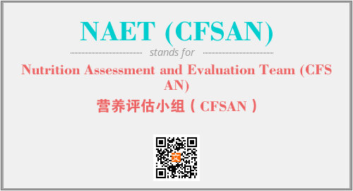 上述内容是“Nutrition Assessment and Evaluation Team (CFSAN)”作为“NAET (CFSAN)”的缩写,解释为“营养评估小组(CFSAN)”时的信息,以及英文缩略词NAET (CFSAN)所代表的英文单词,其对应的中文拼音、详细解释以及在英文中的流行度和相关分类、应用领域及应用示例等。