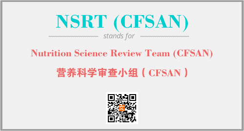 上述内容是“Nutrition Science Review Team (CFSAN)”作为“NSRT (CFSAN)”的缩写,解释为“营养科学审查小组(CFSAN)”时的信息,以及英文缩略词NSRT (CFSAN)所代表的英文单词,其对应的中文拼音、详细解释以及在英文中的流行度和相关分类、应用领域及应用示例等。