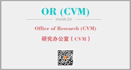 英文缩略词“OR (CVM)”经常作为“Office of Research (CVM)”的英文缩写来使用,中文表示:“研究办公室(CVM)”。本文将详细介绍英文缩写词OR (CVM)所代表英文单词,其对应的中文拼音、详细解释以及在英语中的流行度。此外,还有关于缩略词OR (CVM)的分类、应用领域及相关应用示例等。