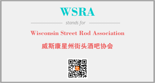 上述内容是“Wisconsin Street Rod Association”作为“WSRA”的缩写,解释为“威斯康星州街头酒吧协会”时的信息,以及英文缩略词WSRA所代表的英文单词,其对应的中文拼音、详细解释以及在英文中的流行度和相关分类、应用领域及应用示例等。