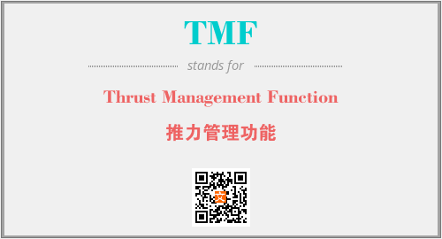 英文缩略词“TMF”经常作为“Thrust Management Function”的英文缩写来使用,中文表示:“推力管理功能”。本文将详细介绍英文缩写词TMF所代表英文单词,其对应的中文拼音、详细解释以及在英语中的流行度。此外,还有关于缩略词TMF的分类、应用领域及相关应用示例等。
