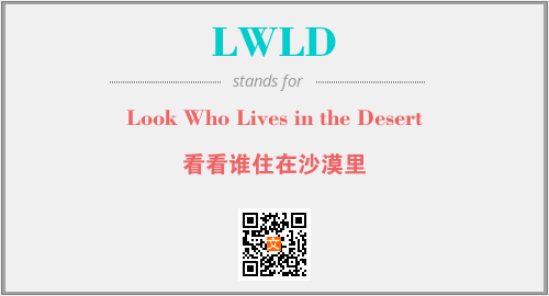 上述内容是“Look Who Lives in the Desert”作为“LWLD”的缩写,解释为“看看谁住在沙漠里”时的信息,以及英文缩略词LWLD所代表的英文单词,其对应的中文拼音、详细解释以及在英文中的流行度和相关分类、应用领域及应用示例等。