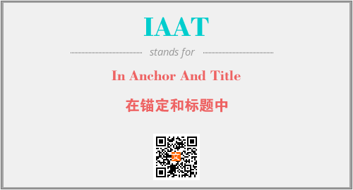 上述内容是“In Anchor And Title”作为“IAAT”的缩写,解释为“在锚定和标题中”时的信息,以及英文缩略词IAAT所代表的英文单词,其对应的中文拼音、详细解释以及在英文中的流行度和相关分类、应用领域及应用示例等。
