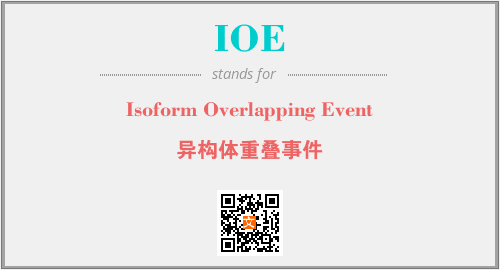 英文缩略词“IOE”经常作为“Isoform Overlapping Event”的英文缩写来使用,中文表示:“异构体重叠事件”。本文将详细介绍英文缩写词IOE所代表英文单词,其对应的中文拼音、详细解释以及在英语中的流行度。此外,还有关于缩略词IOE的分类、应用领域及相关应用示例等。