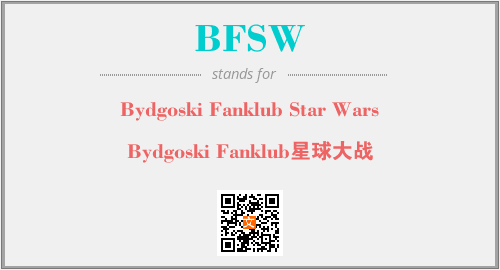 英文缩略词“BFSW”经常作为“Bydgoski Fanklub Star Wars”的英文缩写来使用,中文表示:“Bydgoski Fanklub星球大战”。本文将详细介绍英文缩写词BFSW所代表英文单词,其对应的中文拼音、详细解释以及在英语中的流行度。此外,还有关于缩略词BFSW的分类、应用领域及相关应用示例等。