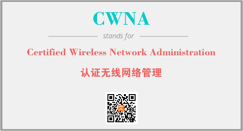英文缩略词“CWNA”经常作为“Certified Wireless Network Administration”的英文缩写来使用,中文表示:“认证无线网络管理”。本文将详细介绍英文缩写词CWNA所代表英文单词,其对应的中文拼音、详细解释以及在英语中的流行度。此外,还有关于缩略词CWNA的分类、应用领域及相关应用示例等。