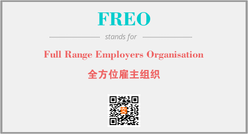 上述内容是“Full Range Employers Organisation”作为“FREO”的缩写,解释为“全方位雇主组织”时的信息,以及英文缩略词FREO所代表的英文单词,其对应的中文拼音、详细解释以及在英文中的流行度和相关分类、应用领域及应用示例等。