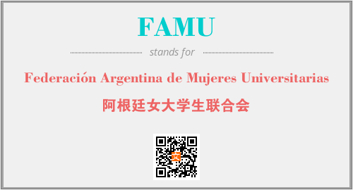 上述内容是“Federación Argentina de Mujeres Universitarias”作为“FAMU”的缩写,解释为“阿根廷女大学生联合会”时的信息,以及英文缩略词FAMU所代表的英文单词,其对应的中文拼音、详细解释以及在英文中的流行度和相关分类、应用领域及应用示例等。
