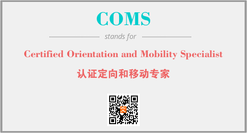 以上为Certified Orientation and Mobility Specialist英文缩略词COMS的中文解释,以及该英文缩写在英语的流行度、分类和应用领域方面的信息。