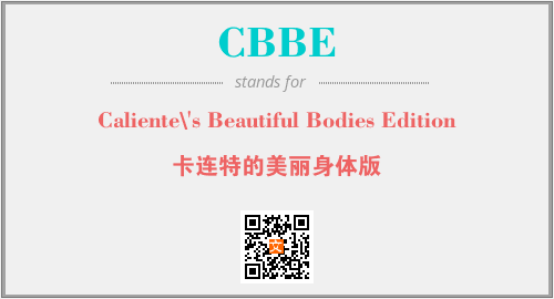 上述内容是“Caliente\'s Beautiful Bodies Edition”作为“CBBE”的缩写,解释为“卡连特的美丽身体版”时的信息,以及英文缩略词CBBE所代表的英文单词,其对应的中文拼音、详细解释以及在英文中的流行度和相关分类、应用领域及应用示例等。