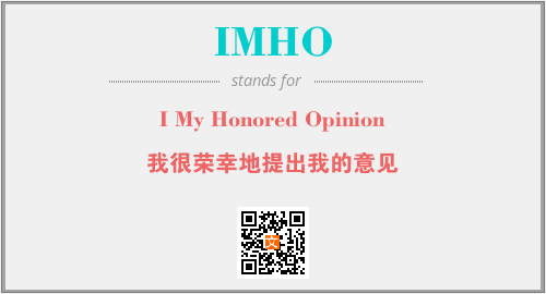 以上为I My Honored Opinion英文缩略词IMHO的中文解释,以及该英文缩写在英语的流行度、分类和应用领域方面的信息。