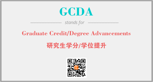上述内容是“Graduate Credit/Degree Advancements”作为“GCDA”的缩写,解释为“研究生学分/学位提升”时的信息,以及英文缩略词GCDA所代表的英文单词,其对应的中文拼音、详细解释以及在英文中的流行度和相关分类、应用领域及应用示例等。
