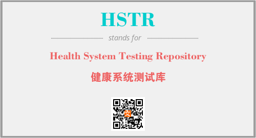 英文缩略词“HSTR”经常作为“Health System Testing Repository”的英文缩写来使用,中文表示:“健康系统测试库”。本文将详细介绍英文缩写词HSTR所代表英文单词,其对应的中文拼音、详细解释以及在英语中的流行度。此外,还有关于缩略词HSTR的分类、应用领域及相关应用示例等。