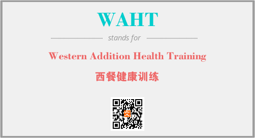 上述内容是“Western Addition Health Training”作为“WAHT”的缩写,解释为“西餐健康训练”时的信息,以及英文缩略词WAHT所代表的英文单词,其对应的中文拼音、详细解释以及在英文中的流行度和相关分类、应用领域及应用示例等。