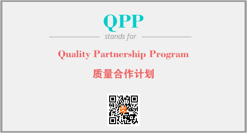 英文缩略词“QPP”经常作为“Quality Partnership Program”的英文缩写来使用,中文表示:“质量合作计划”。本文将详细介绍英文缩写词QPP所代表英文单词,其对应的中文拼音、详细解释以及在英语中的流行度。此外,还有关于缩略词QPP的分类、应用领域及相关应用示例等。