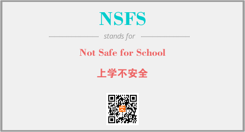 上述内容是“Not Safe for School”作为“NSFS”的缩写,解释为“上学不安全”时的信息,以及英文缩略词NSFS所代表的英文单词,其对应的中文拼音、详细解释以及在英文中的流行度和相关分类、应用领域及应用示例等。