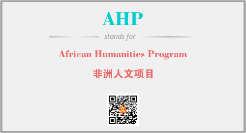 英文缩略词“AHP”经常作为“African Humanities Program”的英文缩写来使用,中文表示:“非洲人文项目”。本文将详细介绍英文缩写词AHP所代表英文单词,其对应的中文拼音、详细解释以及在英语中的流行度。此外,还有关于缩略词AHP的分类、应用领域及相关应用示例等。