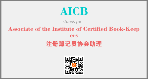 上述内容是“Associate of the Institute of Certified Book-Keepers”作为“AICB”的缩写,解释为“注册簿记员协会助理”时的信息,以及英文缩略词AICB所代表的英文单词,其对应的中文拼音、详细解释以及在英文中的流行度和相关分类、应用领域及应用示例等。