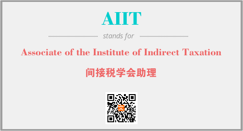 以上为Associate of the Institute of Indirect Taxation英文缩略词AIIT的中文解释,以及该英文缩写在英语的流行度、分类和应用领域方面的信息。